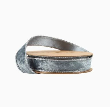 1" Reversible Wired Velvet Ribbon - Blue/Blue
