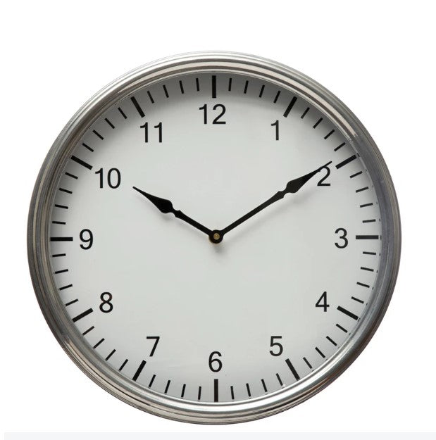 Upgrade your home decor with this sleek and modern 14" Round Metal Nickel Clock. With its accurate timekeeping and durable construction, it's the perfect addition to any room.