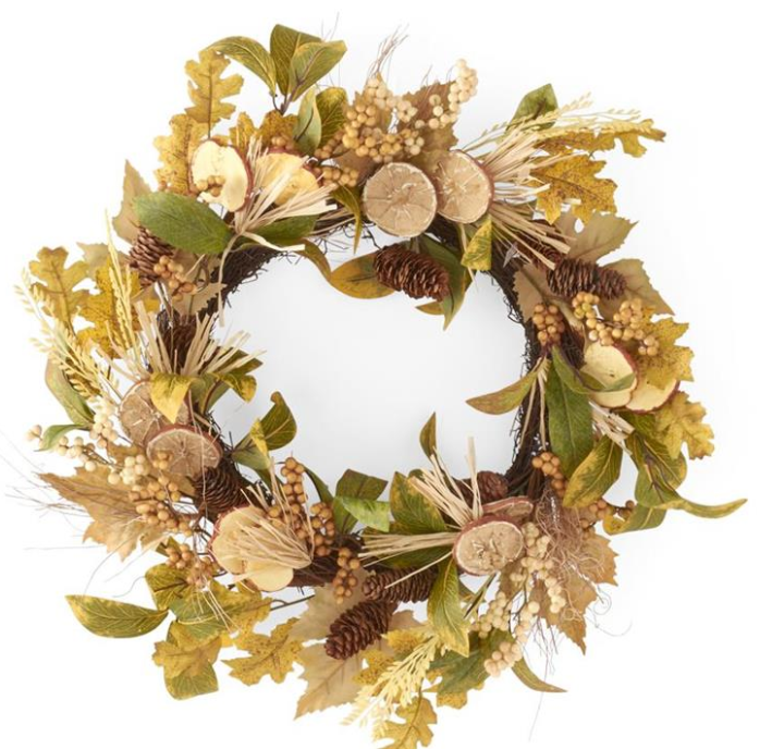 22" Mixed Fall Leaves Wreath w/ Apple & Oranges