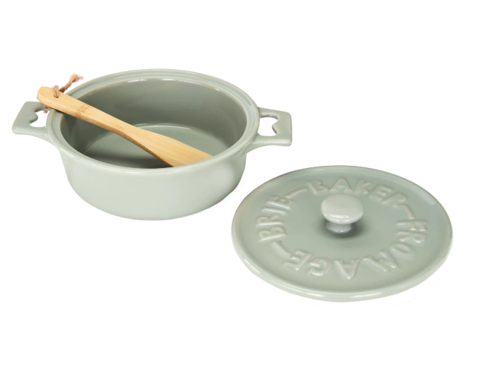 7" Round x 3"H Stoneware Brie Baker w/ Wood Spreader
