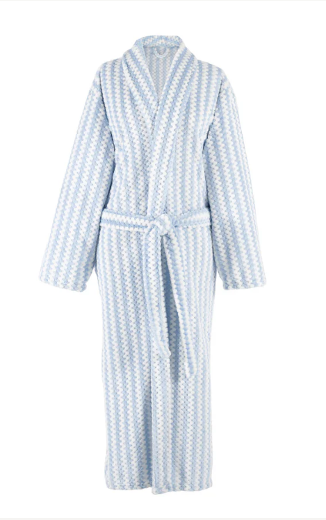 Popcorn texture meets buttery soft fleece for a deliciously decadent lounge experience. Napped inside and out for extravagant plushness against your skin. This light, luxurious, deep pile robe will keep you cozy, warm, and feeling secure with its generous cut and substantial overlap. Styled with a shawl collar, shirt-tail hem, an attached tie belt, and handy inseam pockets.