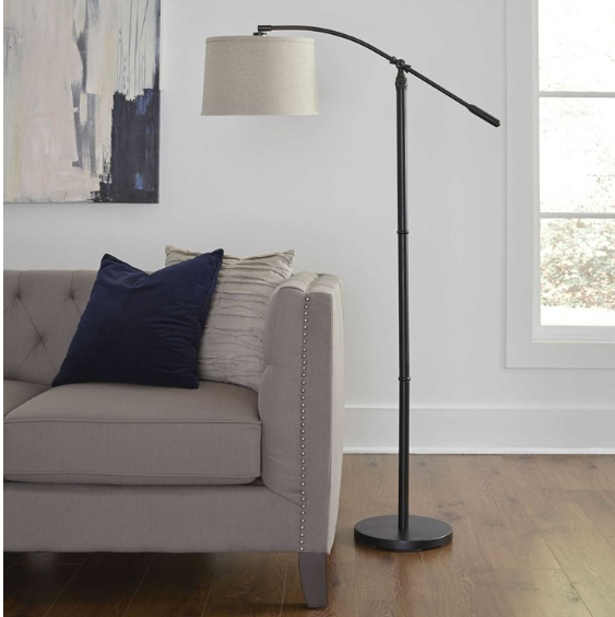 This dark bronze floor lamp is both functional and decorative. Perfect for providing just the right amount of light, this floor lamp has an adjustable arm, which allows more light to focus on the task, along with an adjustable height mechanism. A slightly tapered oatmeal shade complements the rich bronze finish.