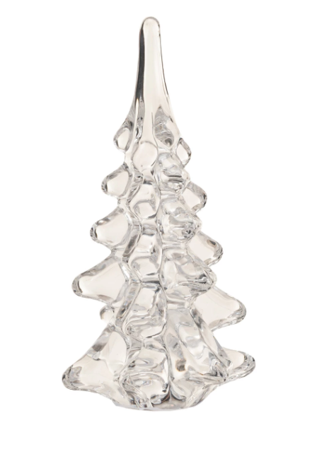 This glass Christmas tree is a gorgeous and exquisite decorative item that can brighten up the space. It measures 3.5 inches in diameter and 6.25 inches in height, making it a noticeable and attractive accessory.