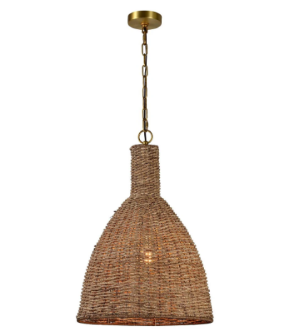 Woven by hand, this oversized rattan basket pendant will give you the magazine “must” for decorating your home. It’s large design creates a statement piece in any room! Hop on the rattan train and bring an organic touch to your style! Its gold canopy and chain are just the right amount of contemporary touch.