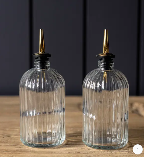 This scalloped Olive Oil & Vinegar Glass Bottles are a great way to elevate your kitchen. These bottles feature a sleek design and a stainless steel pour spout. The Olive Oil & Vinegar dispensers are an easy way to add functional and stylish ways to add to your kitchen decor.