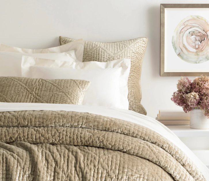Love at first touch, you will melt at the hand feel of this sublimely soft-to-the-skin scrumptious quilt. Relaxed and inviting, double diamond Kantha quilted cotton velvet. Layer on the romance, with velvet for every season.