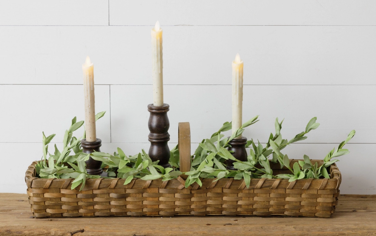 Constructed from durable chipwood, this rectangular basket features a convenient handle for easy carrying. Its versatile design makes it suitable for storage, organization, or decorative use in any space.
