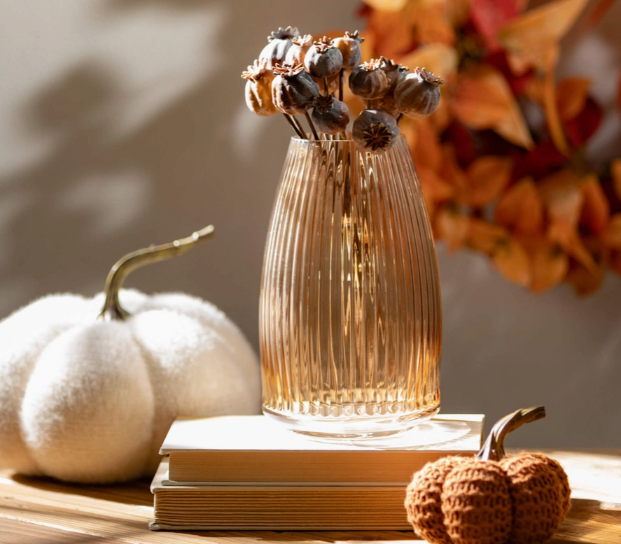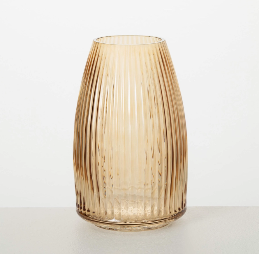Ribbed Amber Vase