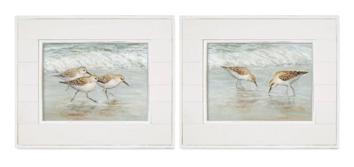 Excellent compliment to another customer favorite, Sandpiper Brigade, this smaller version of our beloved coastal birds is sold as a pair. Each measures 23-3/8"w x 19-3/8"h.