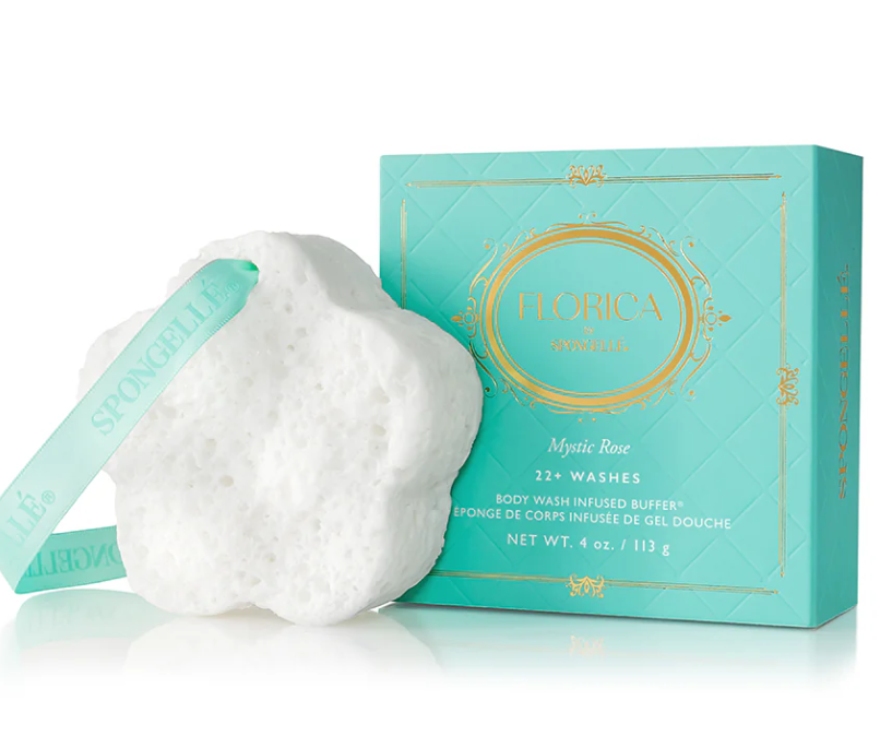 Experience the beauty of our enchanting Florica Collection in exotic Mystic Rose. Developed with enhanced massaging exfoliation on one side and a gentle cleansing scrubber on the other, this luxurious multi-sided Body Wash-Infused Buffer® elevates any shower routine with the scent of captivating rose, refreshingly light water lily, and subtly warm, sweet musk. Cleanse your skin while nourishing it in sultry fragrance enclosed in our elegant tufted-design gift box dressed in delicate turquoise and gold accents.